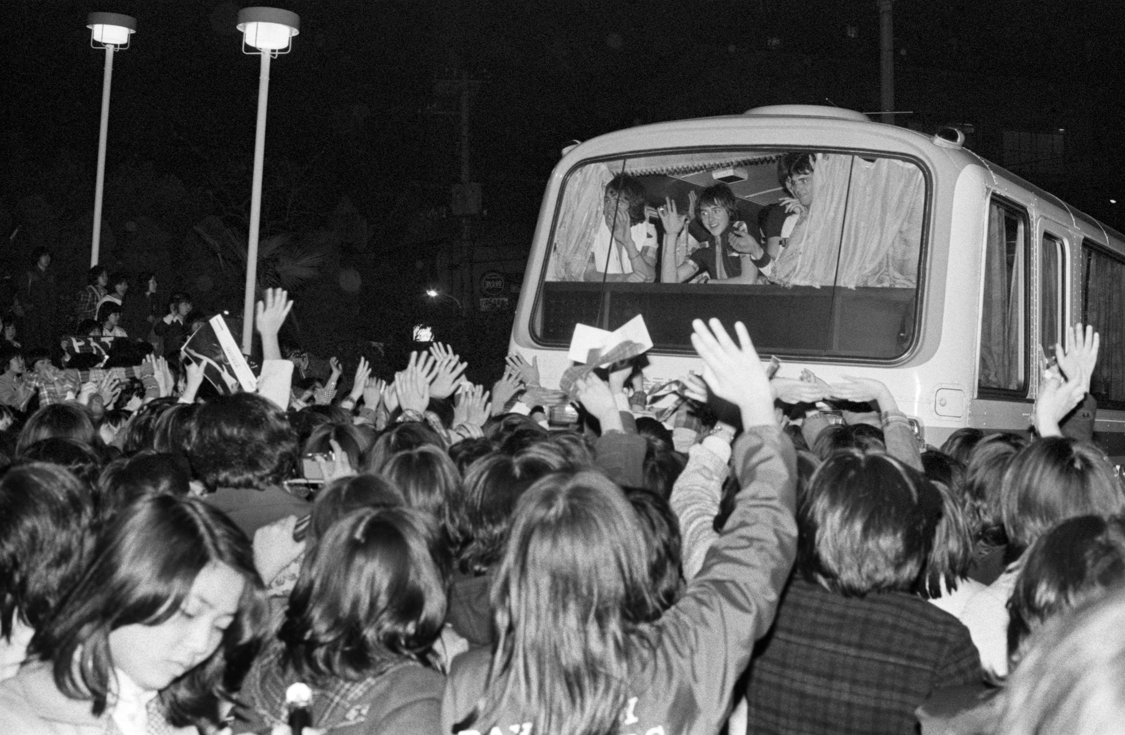 The Bay City Rollers performed in Japan for the first time in December 1976. This was at the height of their worldwide fame when the Scottish band consisted of Derek Longmuir, Ian Mitchell, Stuart “Woody” Wood, Les McKeown and Eric Faulkner. They were responsible for hit records in England like Saturday Night and several No. 1 songs in the United States. The band was especially popular among teenage girls, who were drawn to their boyish charm and freshness. The hordes of passionately screaming girls at their shows led to their events being dubbed “Rollermania,” thus making the Bay City Rollers the only other band to have a “mania” added to their name after the Beatles.